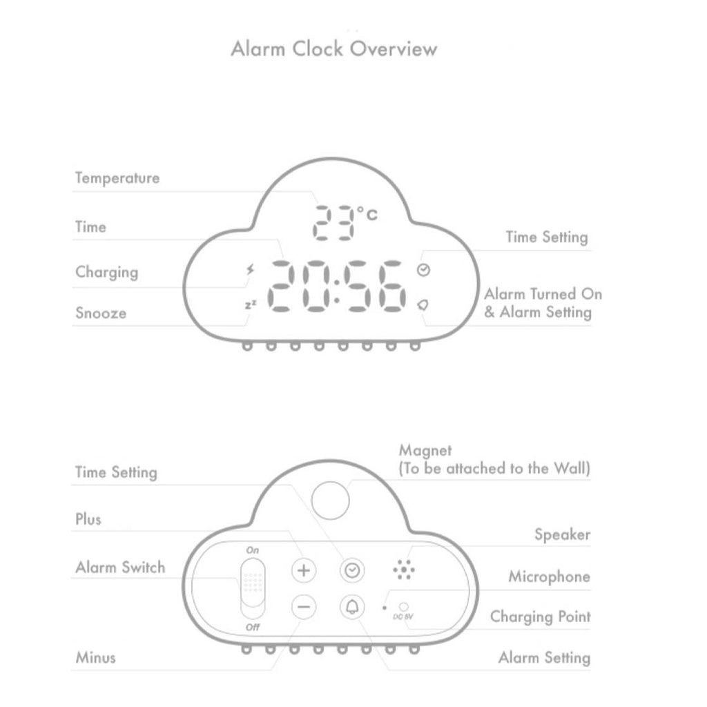 Snooze Mode: Shake the alarm clock lightly to activate the mode when the alarm goes off. In five minutes, the alarm will go off once more.